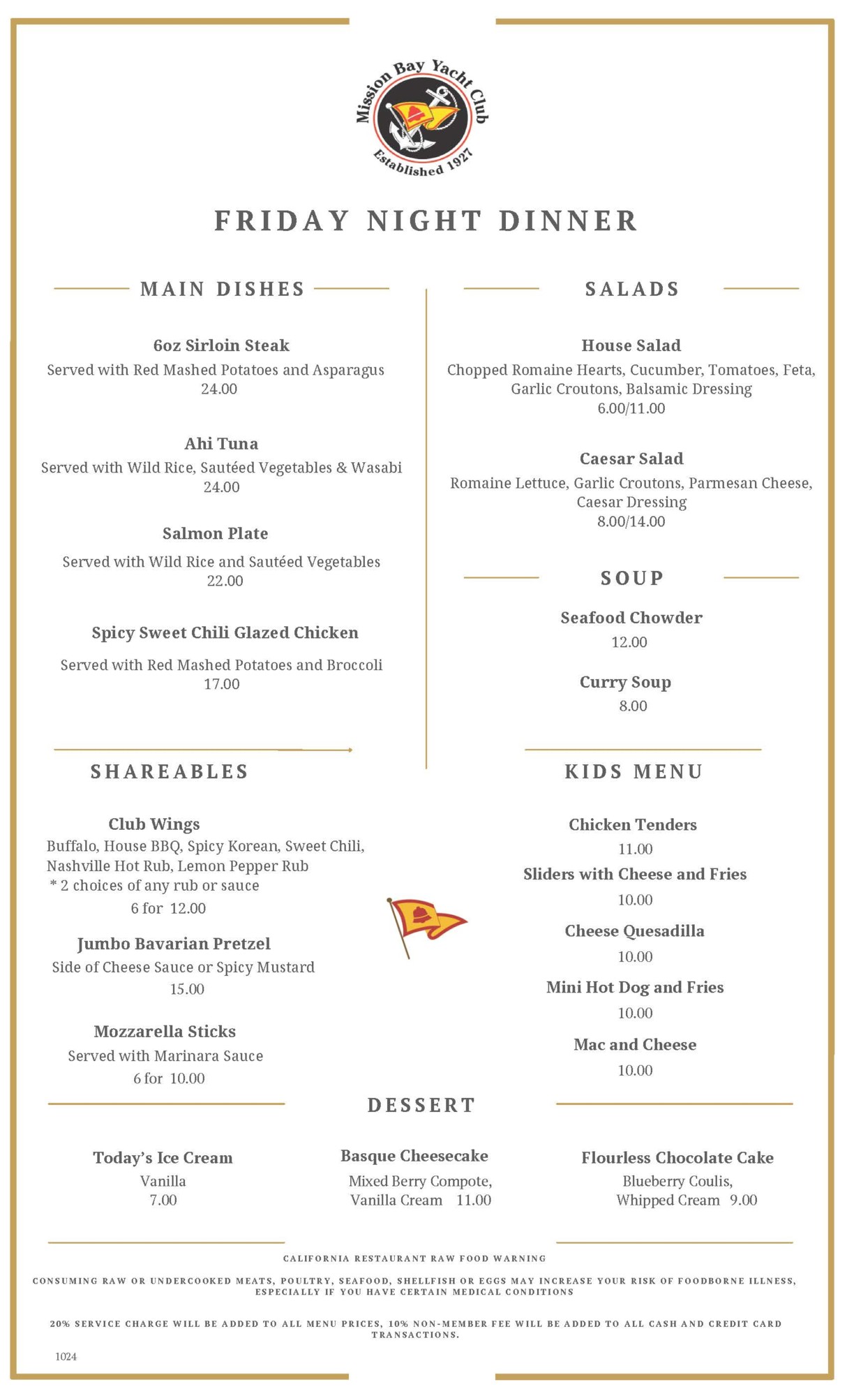 Friday Night Dinner Menu